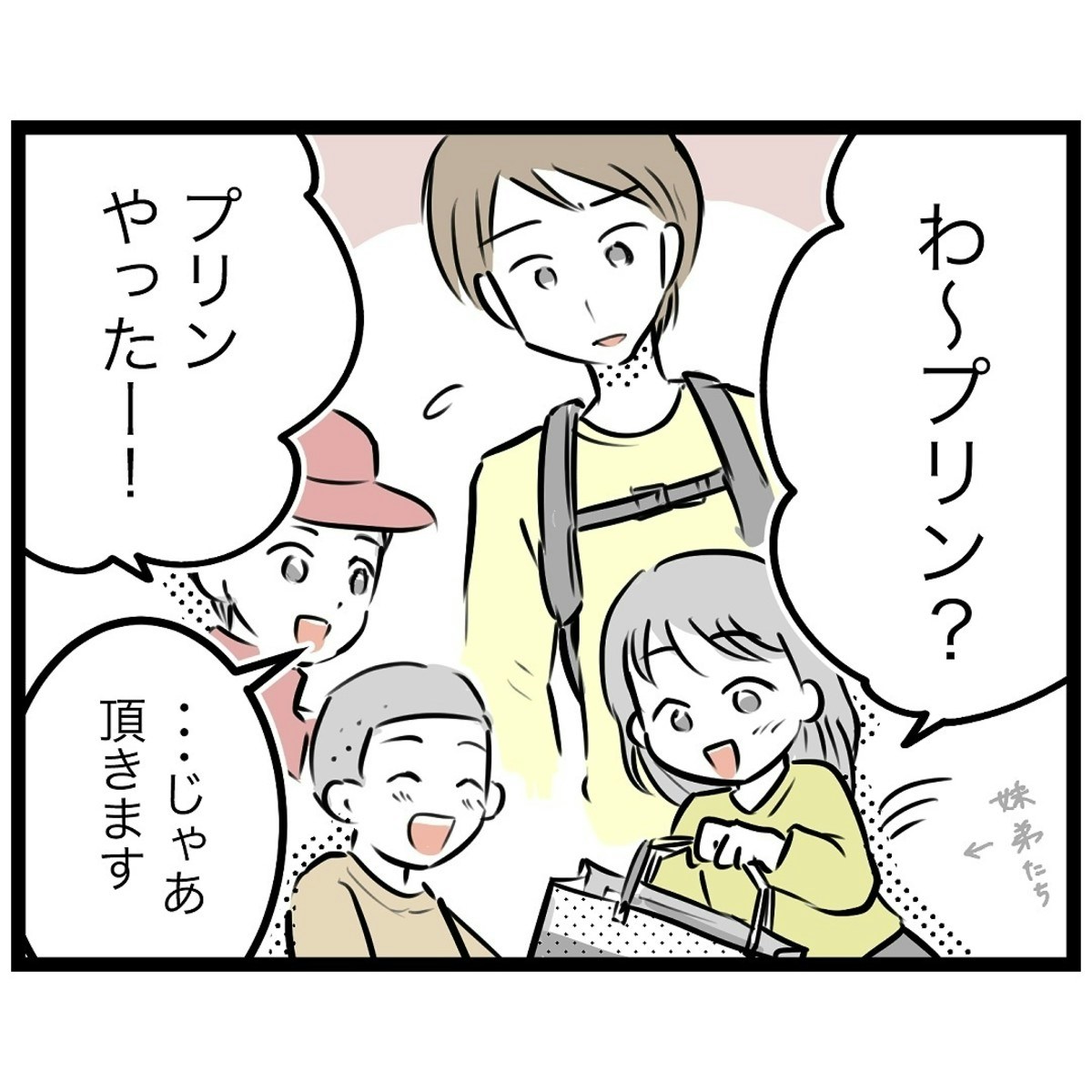「じゃあ、おすそ分けってことで」と提案したもっつんさん。子どもたちがやってきたことによって、なんとかプリンは受け取ってもらえました。