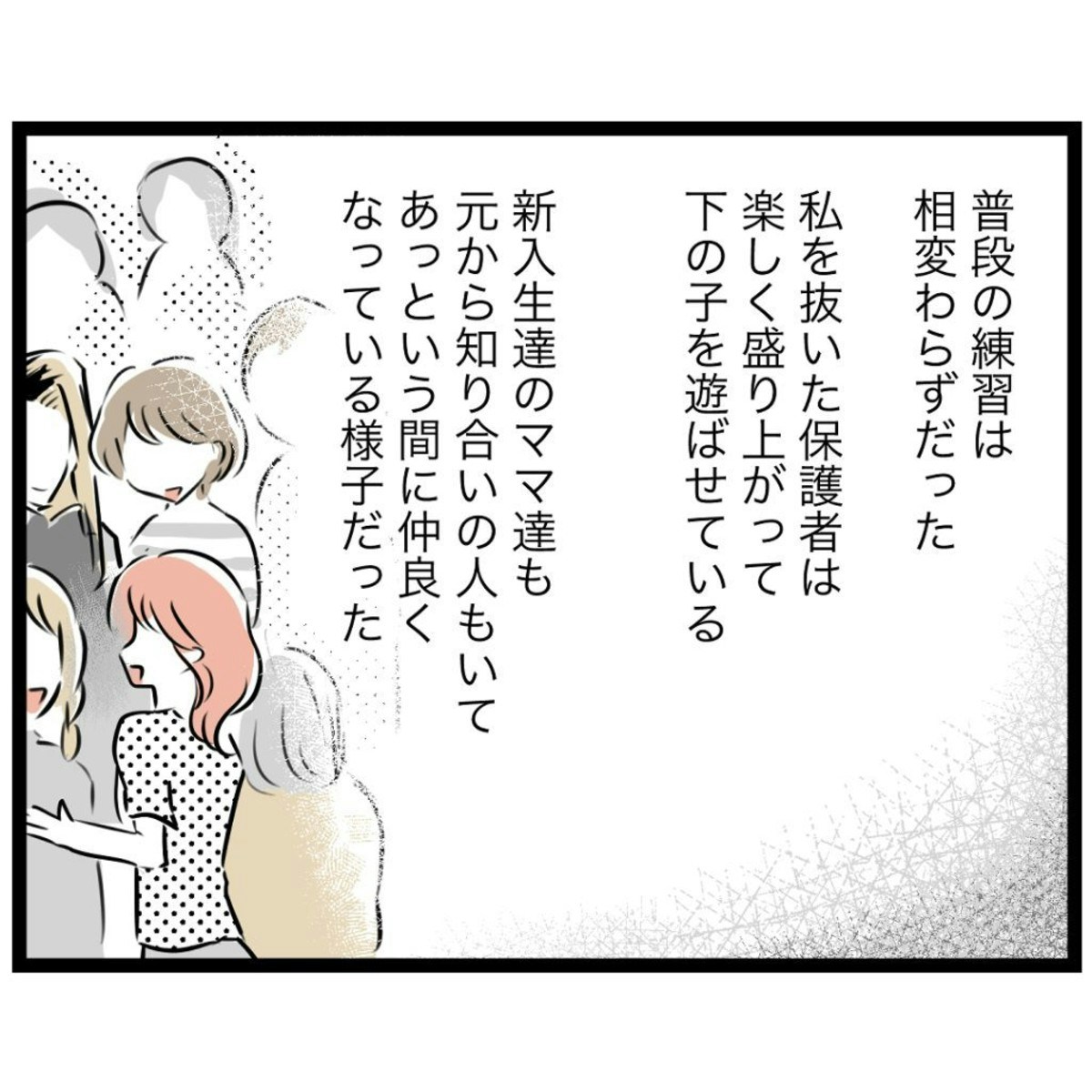 年度が変わり、新入生が入ってきても相変わらず他の保護者になじめずに、疎外感を感じるもっつんさん。新入生ママたちも元々顔見知りが多いようで、あっという間に輪ができています。