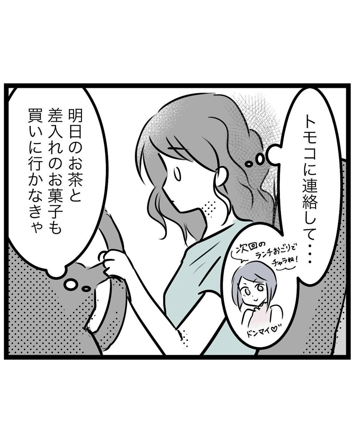 久々に友達と会えるとワクワクしていた朝から一転、お茶当番を忘れて保護者たちから冷たい反応をされ、もっつんさんの気持ちは沈み込みます。