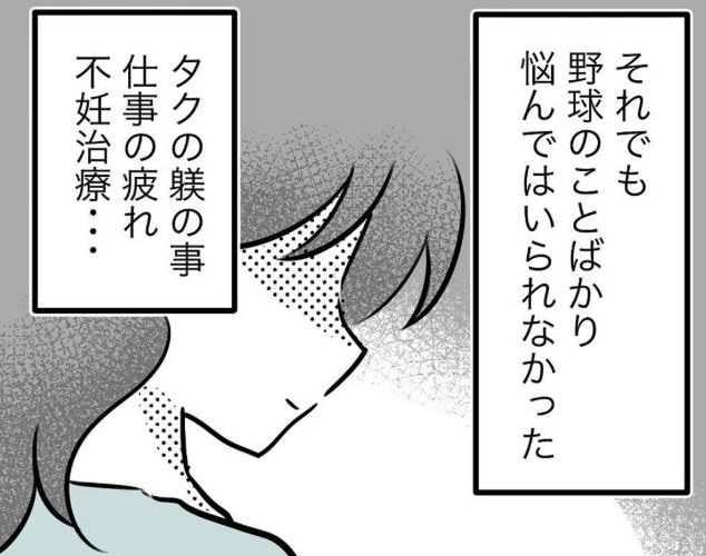 野球の送迎ではチームメイトのきょうだいたちが目に入り、不妊治療中のもっつんさんの心をじわじわと蝕んでいきます。ますます野球に対して気が重くなる日々を過ごしていましたが…。