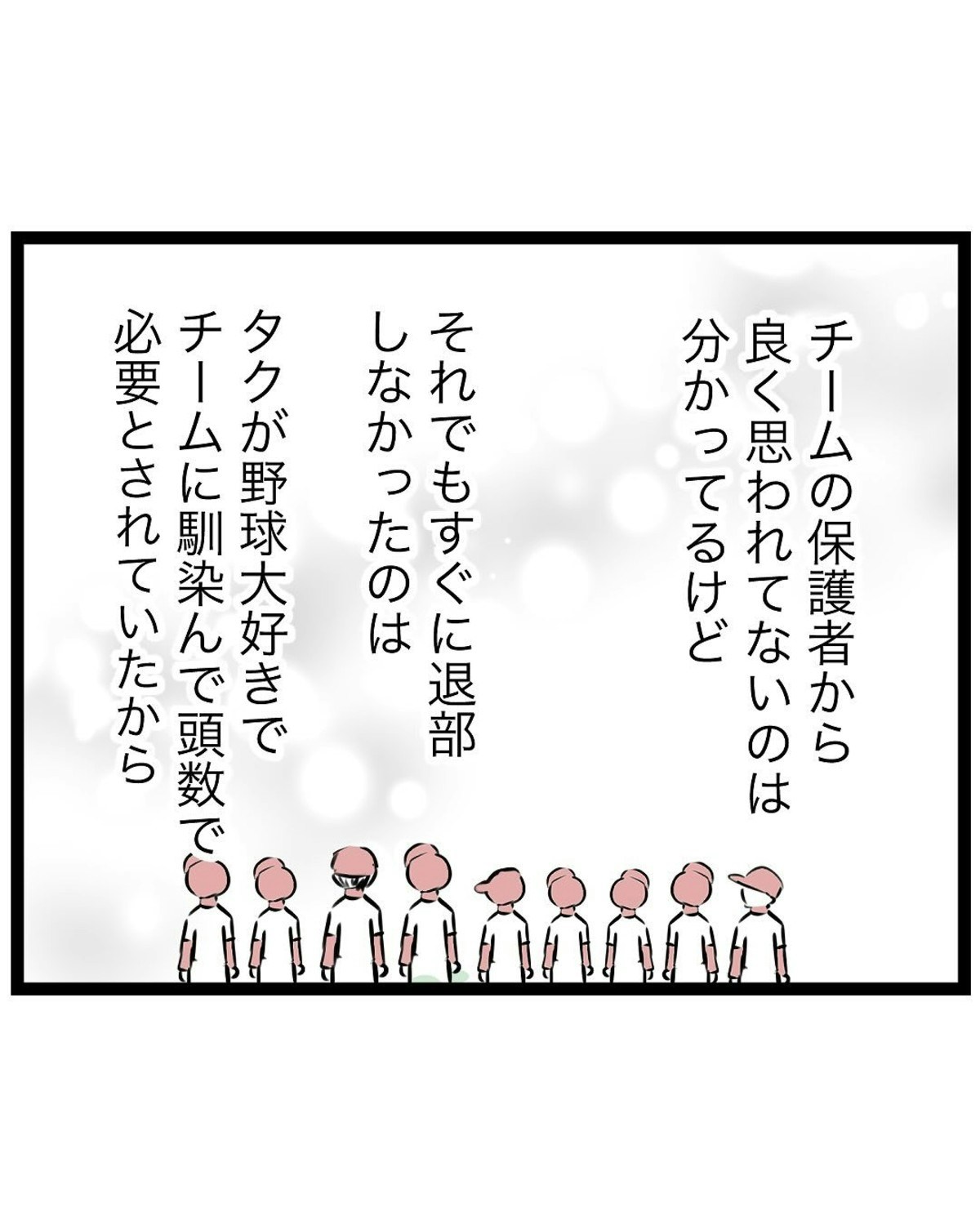 母にとっては居心地の悪いチームですが、息子・タクにとっては大切な居場所。わが子のために、もっつんさんは自分が犠牲になることを選びました。