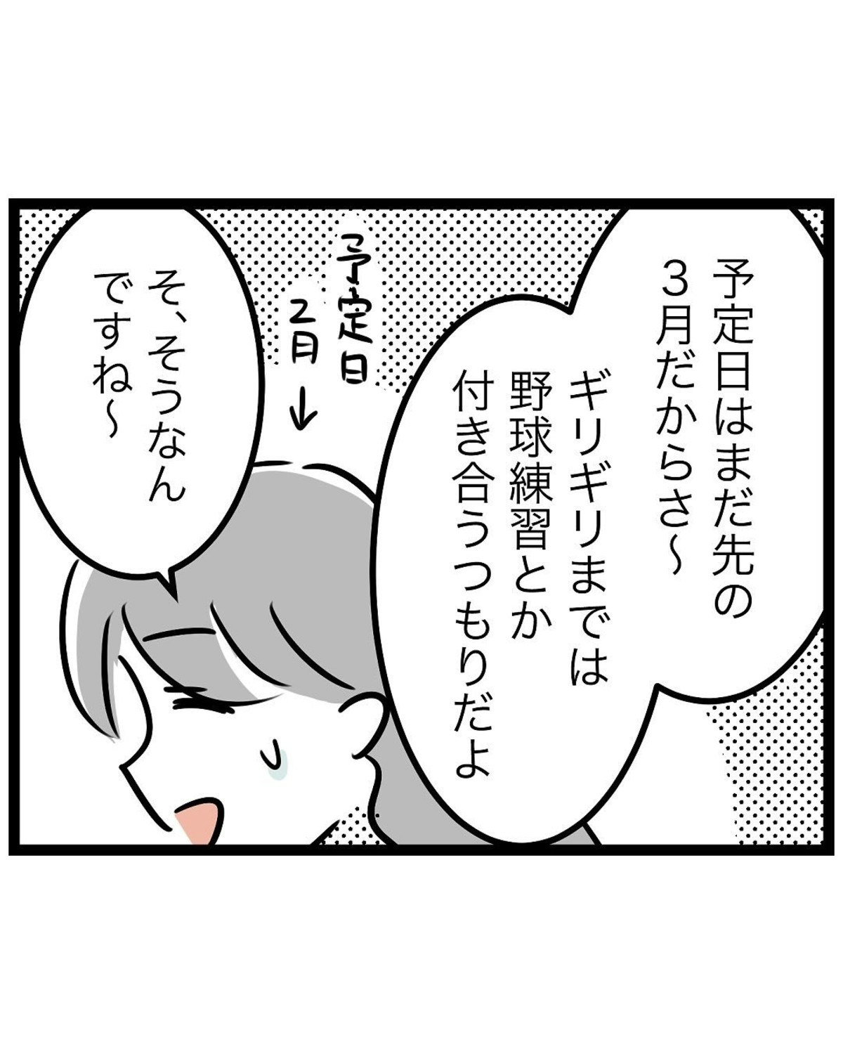 チームの保護者たちとの関係に悩み、野球を辞めたいと思いながらも、楽しそうにプレーする息子の姿を前に踏み切れずにいたもっつんさん。そんな中、不妊治療の末に待望の新しい命を授かりました。チームにはまだ妊娠のことを伝えていなかったものの、産婦人科で思いがけず保護者の1人と鉢合わせしてしまいます。