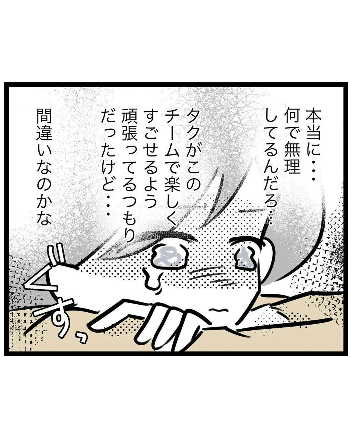 体調が悪そうなもっつんさんを見たチームの保護者たちの中からは「そんなにレギュラーがほしいのか」などと心ない陰口も聞こえ、もっつんさんは動揺します。