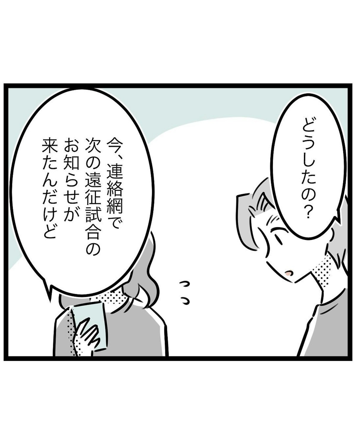 そんな中、遠方への練習試合の連絡が入り、生まれたばかりの赤ちゃんを抱えての遠征に、またしても気が重くなるのでした。