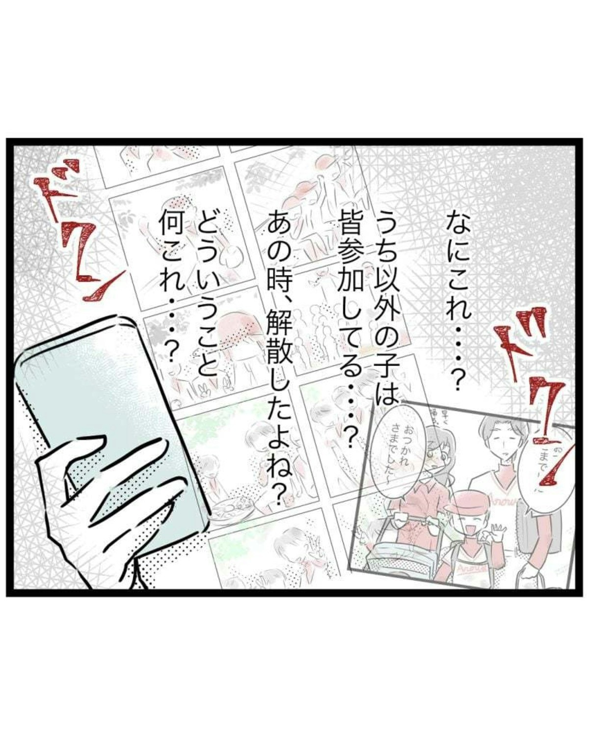 チーム内で孤立しながらも、野球を楽しむ息子のために退団を先延ばしにしていたもっつんさん。不妊治療の末に第2子を出産し、赤ちゃんを連れて練習試合に同行しますが、後日、自分だけ知らされていなかったお楽しみ会の存在を知り、大きなショックを受けました。