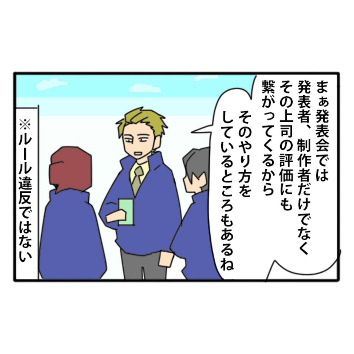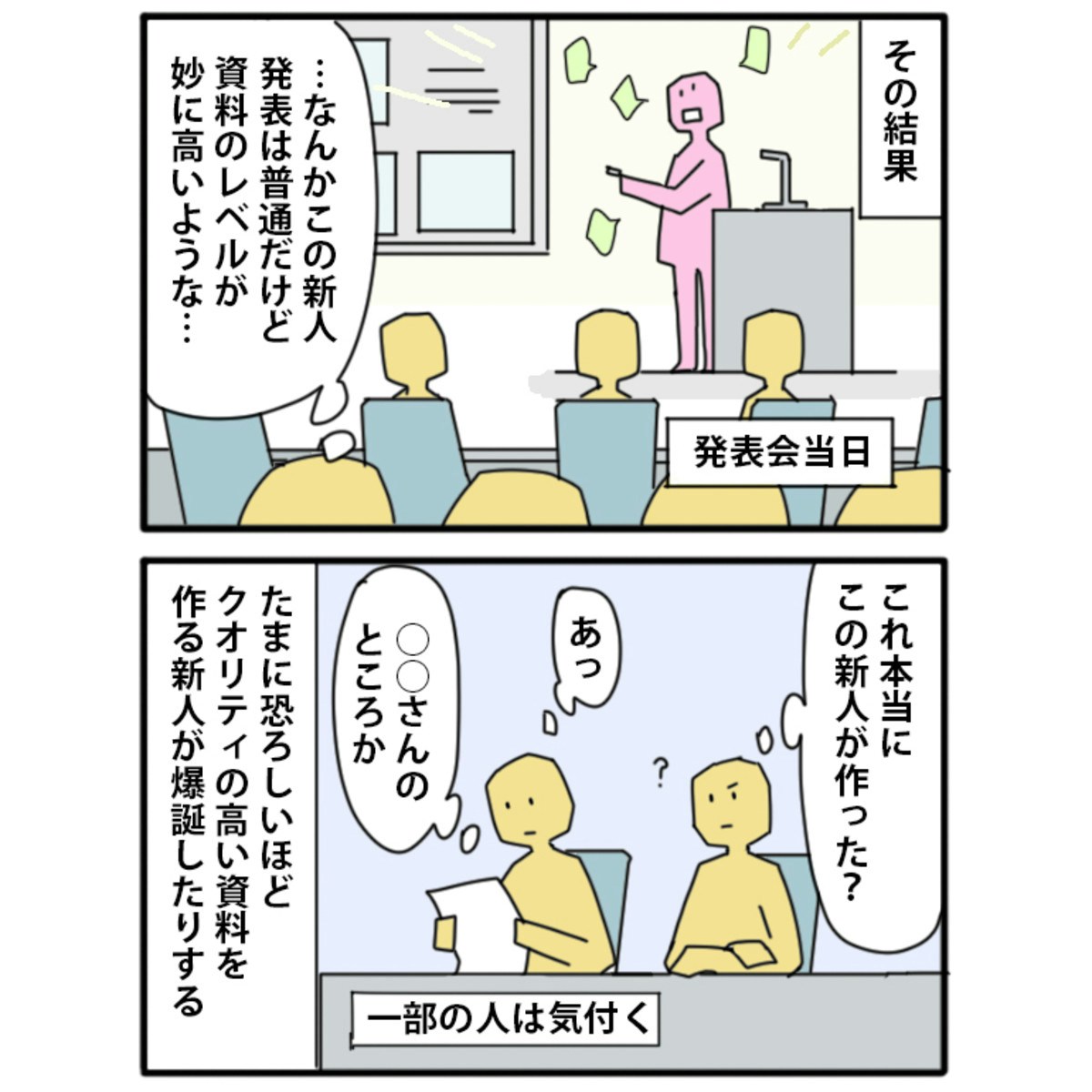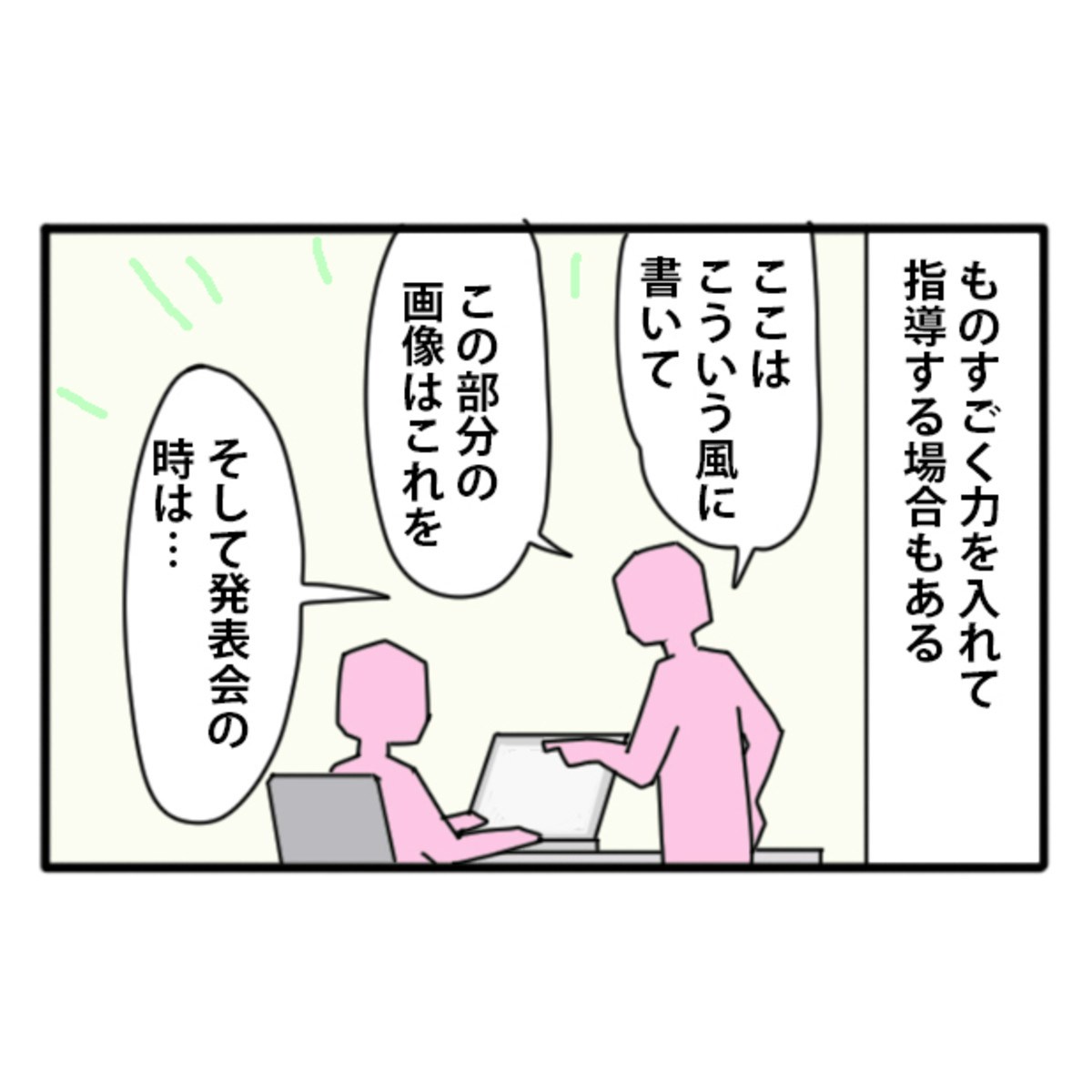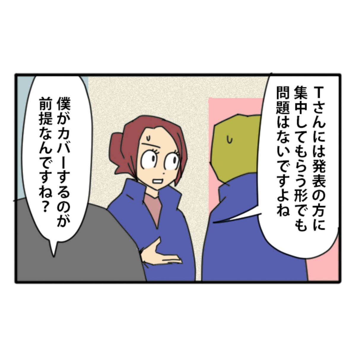 発表会での成果は、上司の評価にもつながるため、熱心に指導をする上司もいます。Tさんについては、もしも途中で間に合いそうになければ、周りがカバーする方針です。