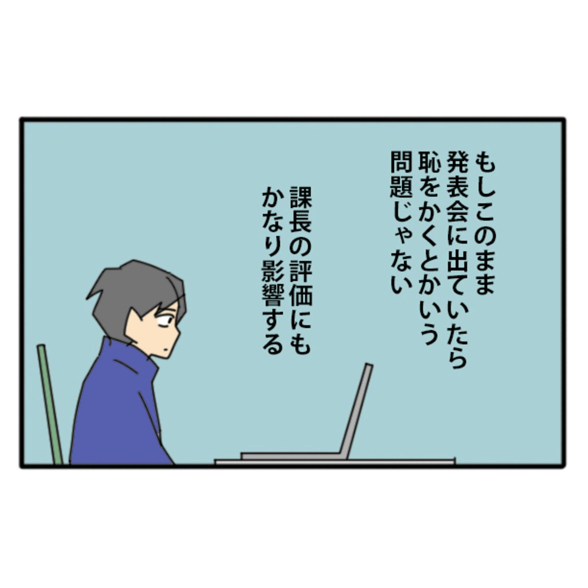 過去の発表会資料に目を通す課長…。そこで見たのは、Tさんの資料とほぼ同じものでした。Tさんを信頼し、任せた発表者の大役でしたが、裏切られる形になってしまったようです。