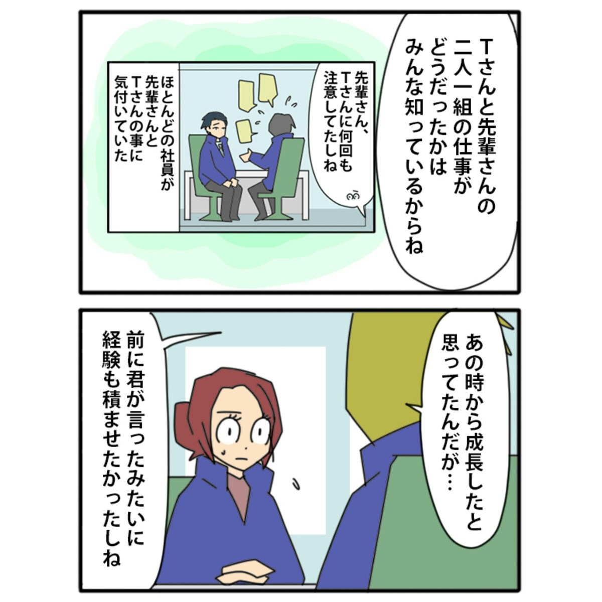 あくまでも非を認めないTさんの態度に失望した課長は、Tさんに「もうやらなくていい」と告げます。Tさんも、「分かりました」と言い残して退室しました。