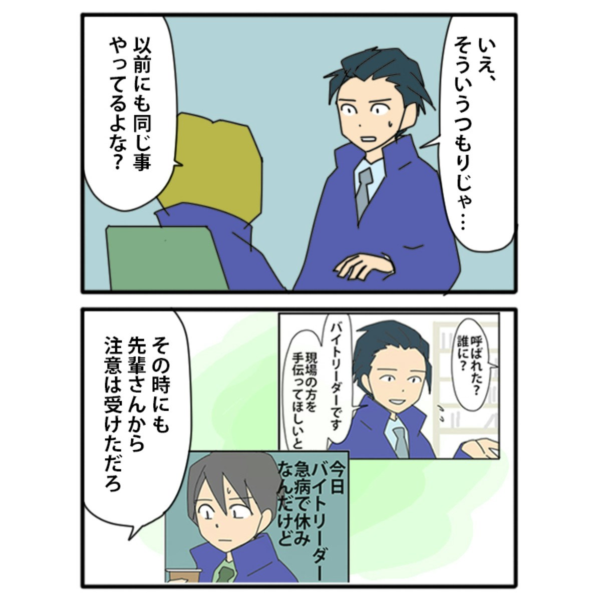 実は、以前にもバイトリーダーから呼ばれたとウソをついたことがある、Tさん。その時も、先輩さんから注意を受けたはずなのに、今回もまた同じ過ちをくり返しています。