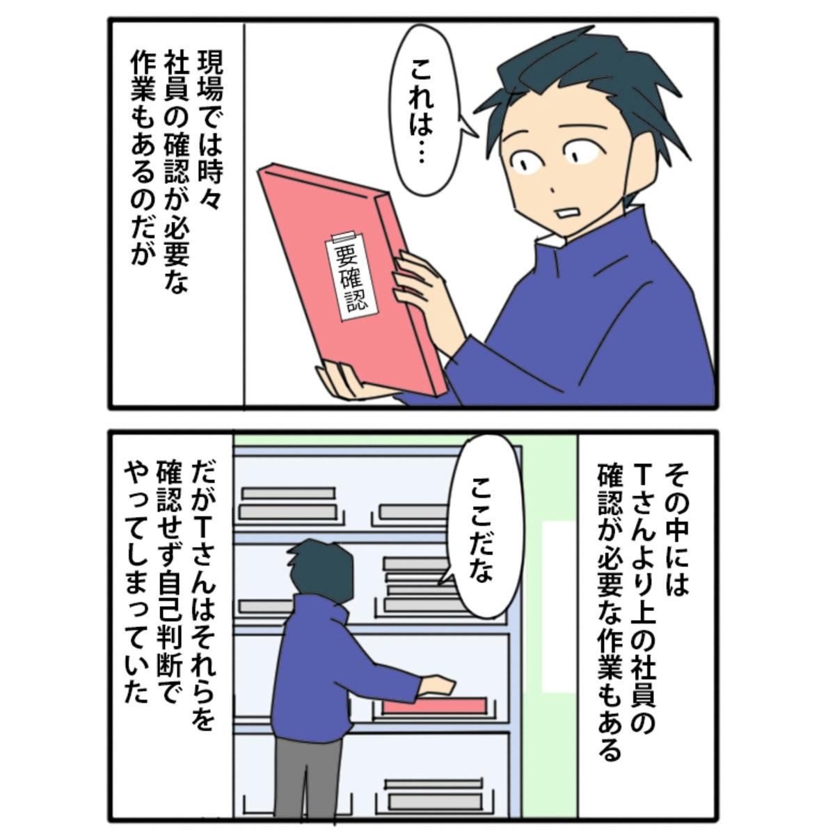 Tさんは、上司の確認が必要な作業を独断で進め、作業手順を間違えてしまいました。現場を回せているという自信からなのか、純粋なミスだったのかは不明ですが、またしても、上からの指示を無視した結果となってしまいました。