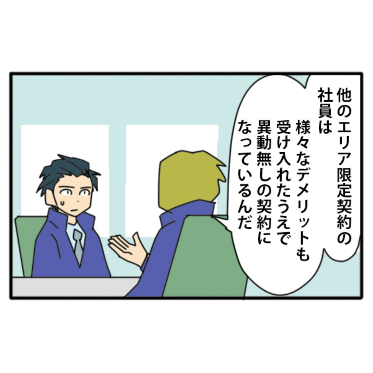 何と言われても、Tさんは異動を拒否するつもりの様子です。「理由による」と課長は言いますが、そもそも異動がいやなのであれば、「エリア限定契約」にすべきところだったのです。