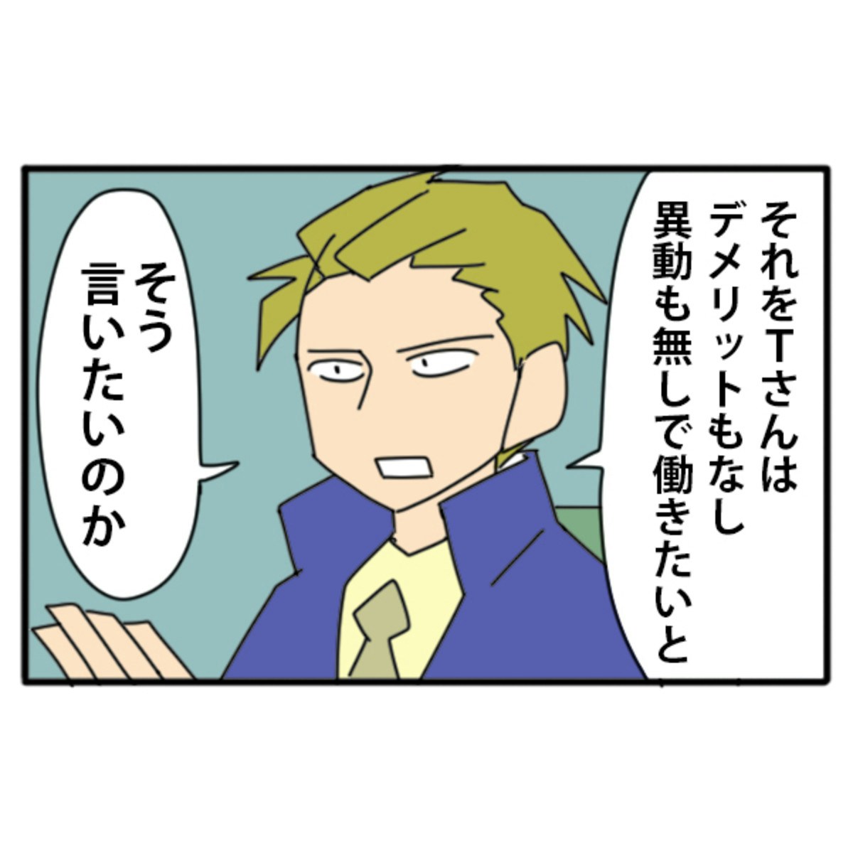 異動を拒否する理由を問いかける課長。Tさんは何も答えられなくなってしまいます。その様子に「納得したのか?」と課長はたずねますが…。