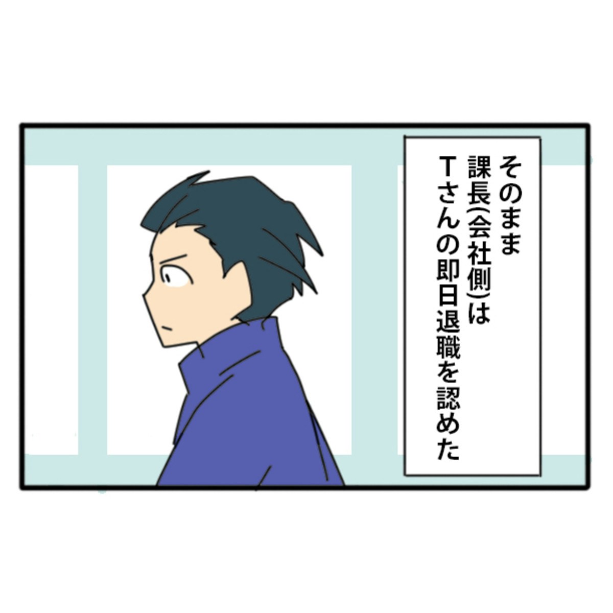 異動の話し合いの末、Tさんが選んだのは異動するかどうかではなく、「即日退職」という思いがけない決断でした。くわしい理由があかされることはなく、振り回された日々はあっけなく終わりを迎えます。