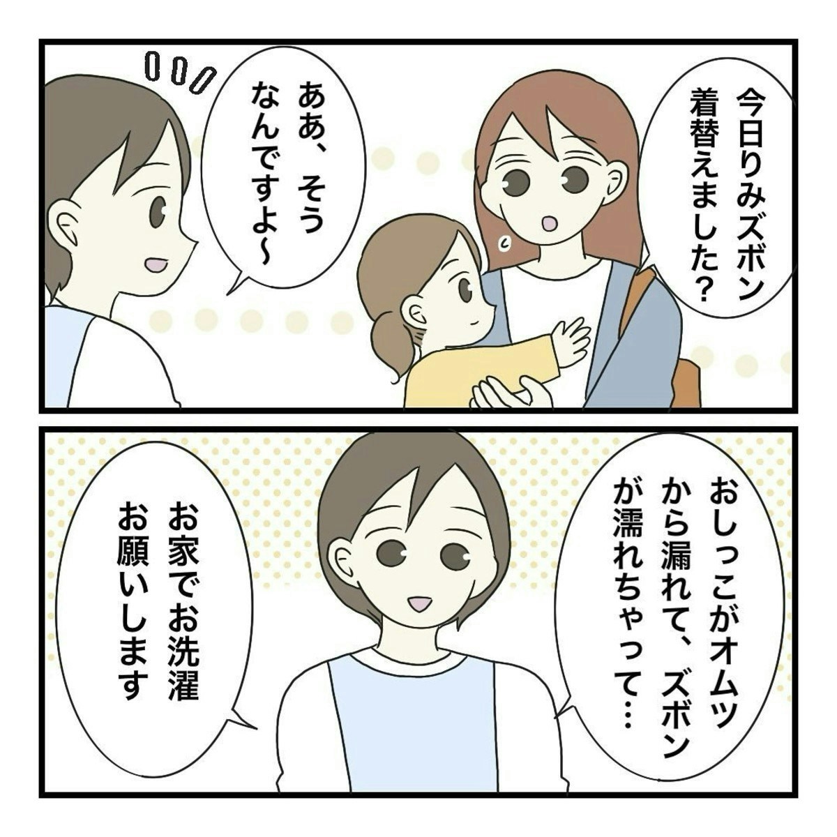 仕事が終わり、自分の子ども2人を迎えに行った主人公のまりな。そこで避難訓練があったことなど、その日の活動について報告を受けていたまりなですが、保育士さんからあることを伝えられます。
