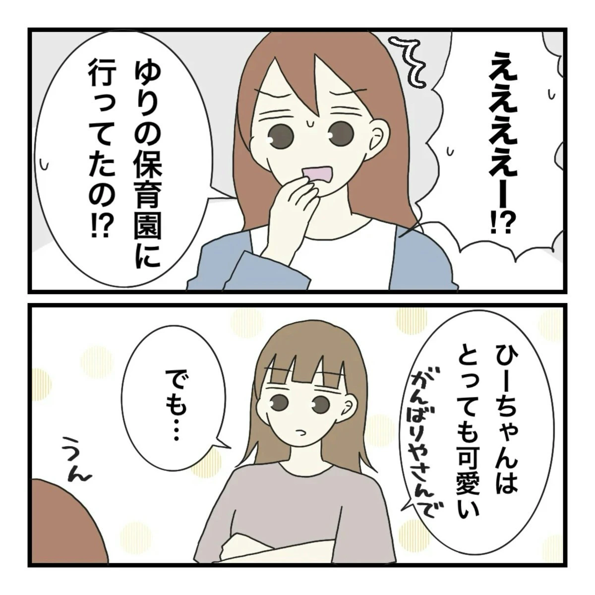 しかし、転園先の保育園は、ひーちゃんの保護者が思っていた以上に保護者の負担が多く、不満がたまっているようでした。そんなひーちゃんが転園したのは、まりなの妹が勤める保育園だったようで、その話を聞いたまりなは驚くのでした。