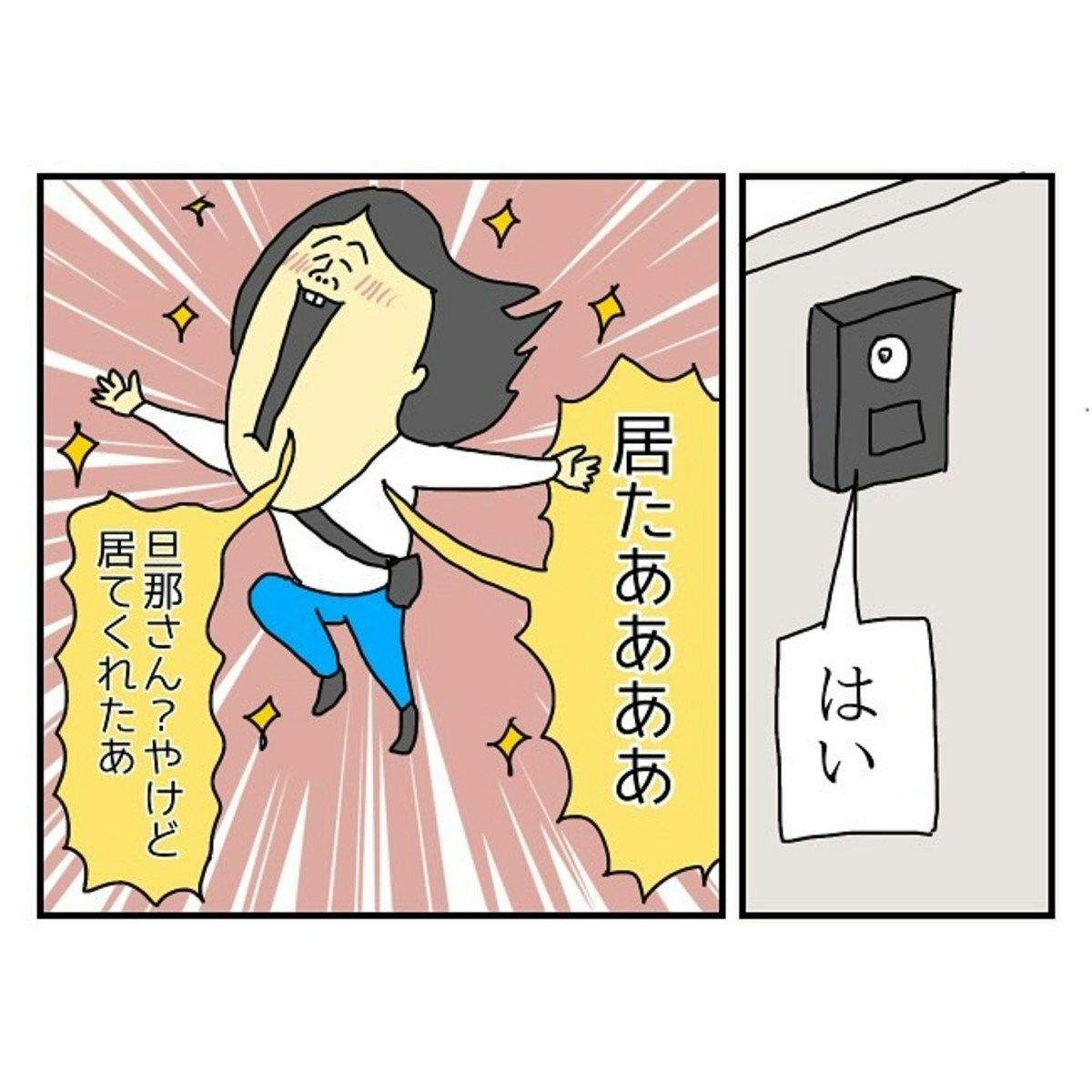 インターフォンからは男性の声。留守じゃないことによろこびますが、思った反応と違うようです。