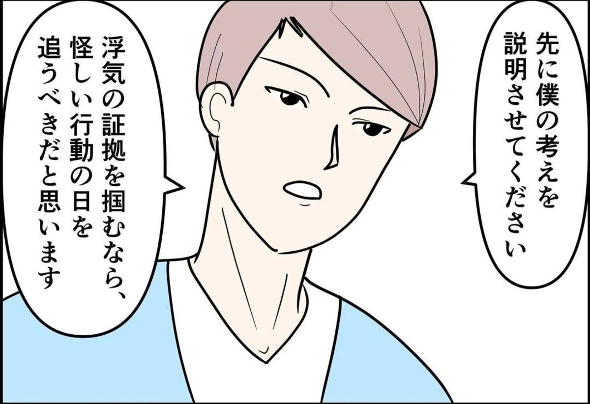 新人の女性職員との浮気疑惑がある邦夫と一度ちゃんと向き合おうとしますが、話し合いは決裂。佳奈さんは証拠を集める決心をします。