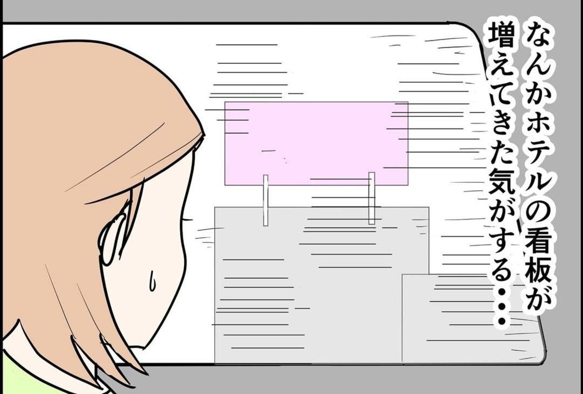 邦夫のいる場所へ向かっている佳奈さんですが、明らかに景色が怪しい看板だらけになっていきます。