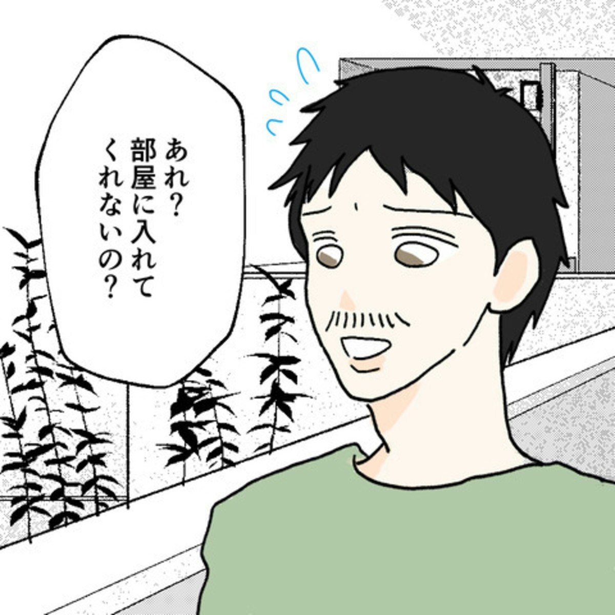 E原さんを残しS葉さんは部屋の外にいるM生の元へ。M生は、S葉さんが部屋に入れてくれないことに困惑している様子です。