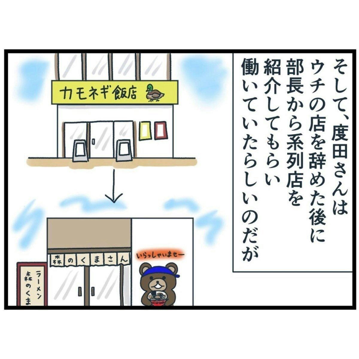 飲食店で働くナエクマさん。同じ職場にはほぼ毎日出勤する坂本さんというベテランがいます。また、ナエクマさんは同じシフトで働いたことはありませんが、度田さんという無断遅刻を繰り返すアルバイトもいました。