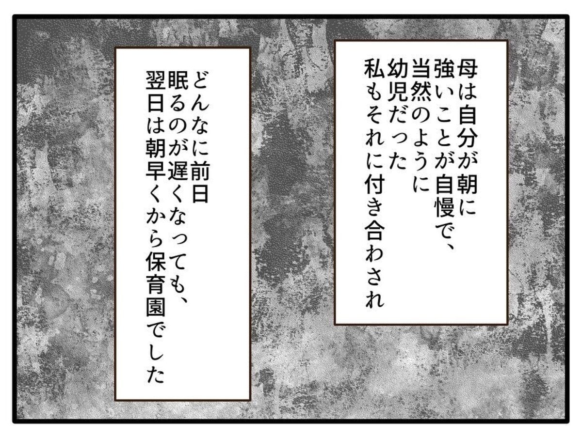 彼氏と2人きりになりたいがために、幼児であるしおりをスーパーのフードコートに置き去りにした母。保護者のすることには思えません…。さらに、しおりの母は自分の生活サイクルに子どもを合わさせ、保育園児だったしおりに夜更かしからの早起きを強いていたようですね。