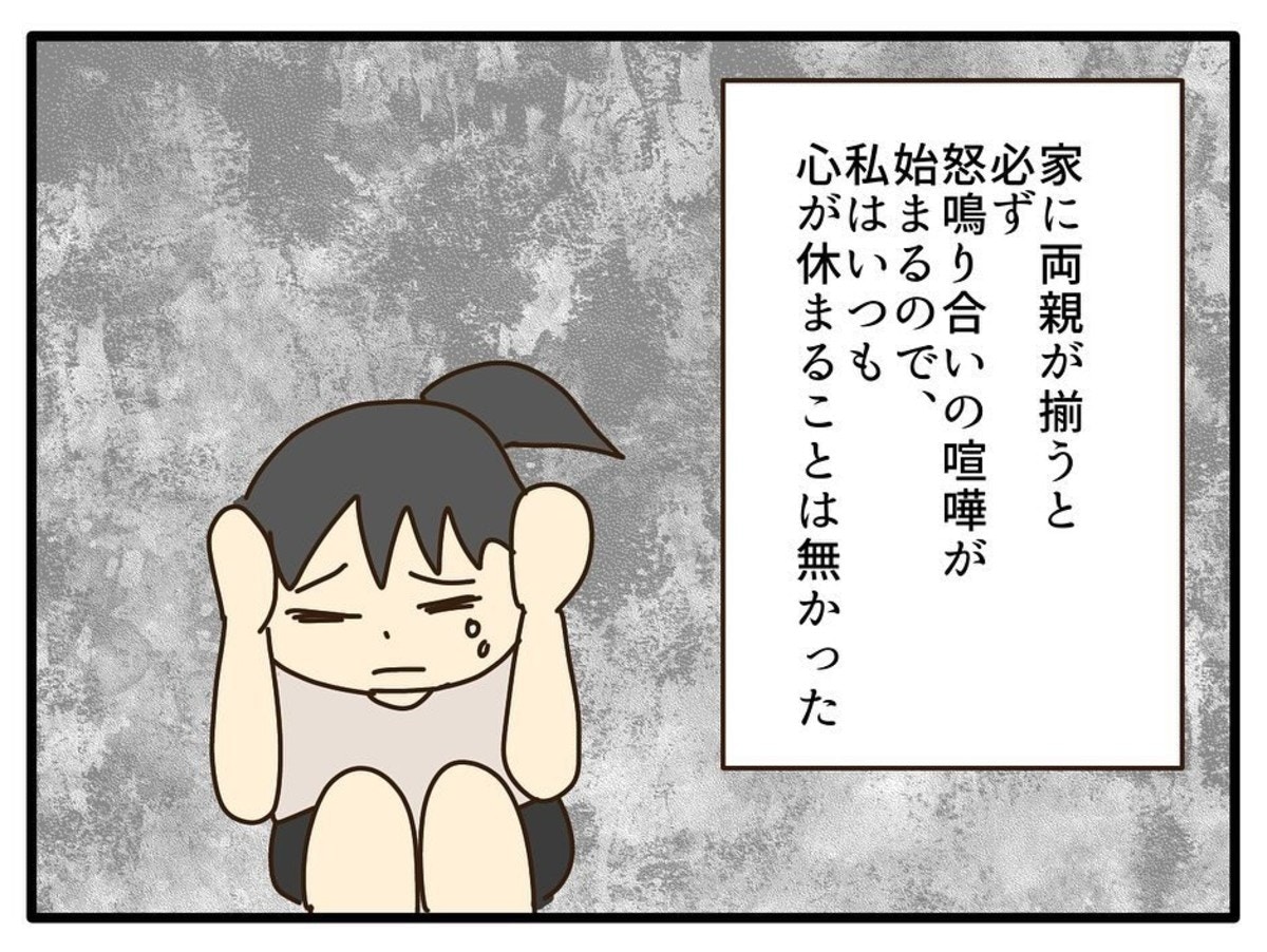 両親は顔を合わせれば言い争いをするような日々で、夫婦関係はすでに破綻している状況でした。しおりは普段、母が彼氏と会う時間に付き合わされたり、夜遅くまでの外出に付き合わされたりしていましたが、それでも、母を嫌いになれなかったと言います。その理由とは…?