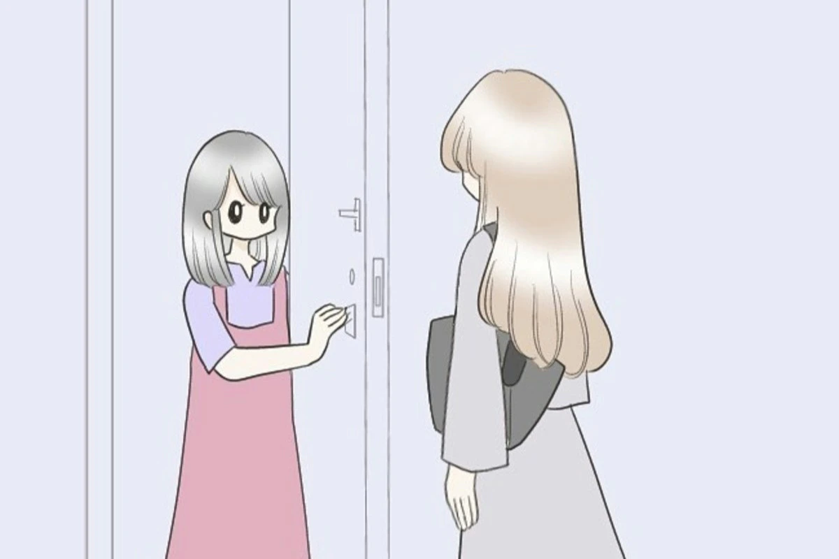 まさとの自宅を訪問したさな。緊張しながら玄関チャイムを押すと、しばらくして女性が顔を見せました。エプロンをつけたその姿に、さなは彼女がまさとの妻だと察知します。