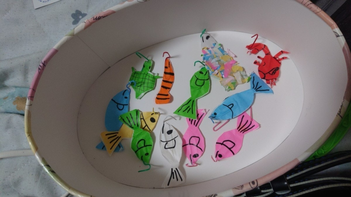 小3の息子が幼稚園児だった頃に、私が作った魚釣りの玩具。
