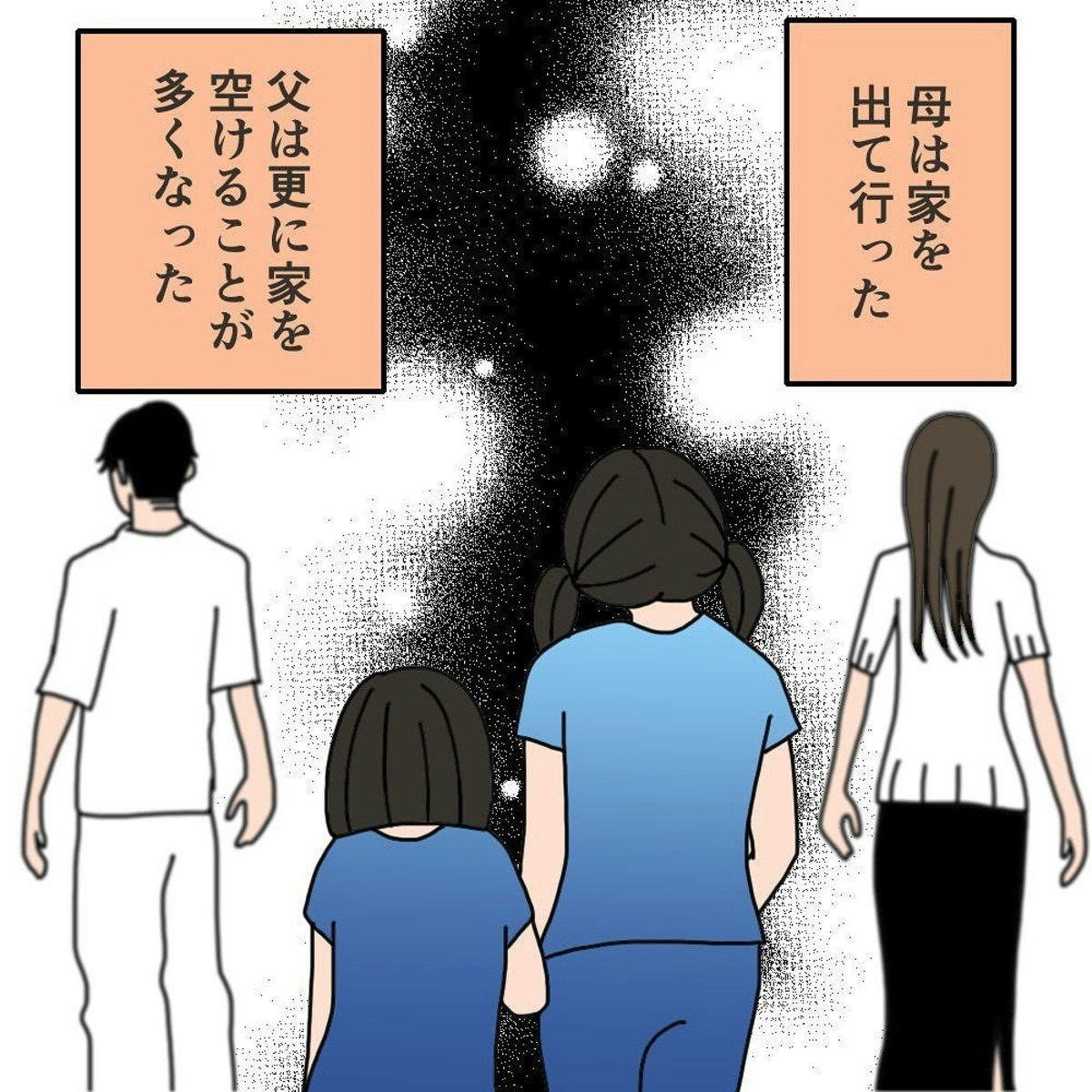 両親が離婚することとなり、どっちと暮らしたいか酷な選択を迫られたこだころ.さん姉妹。そして母は家を出ていき、父も家を空けることが増えます。