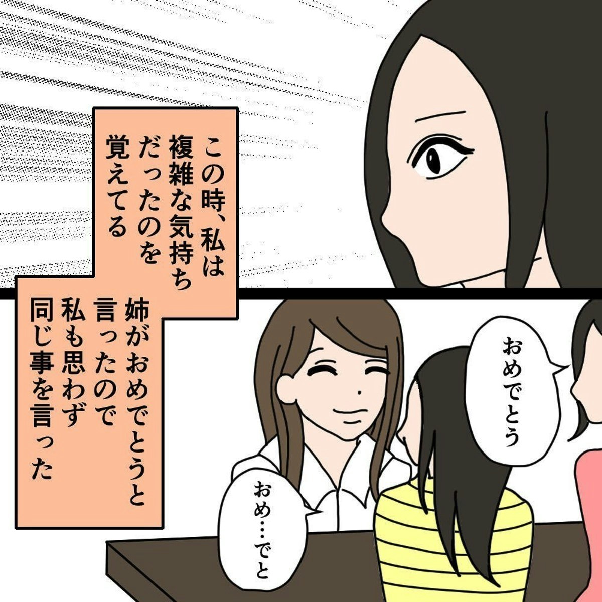 「ママね…妊娠したの」という生みの母に、複雑な気持ちを抱いたこだころ.さん。しかし姉が「おめでとう」と言ったことで、とっさに自らも同じことを言ったのでした。