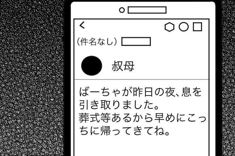 県外に出てから2年が経ったある日、「ばーちゃが昨日の夜、息を引き取りました。」という叔母からのメールが届きます。