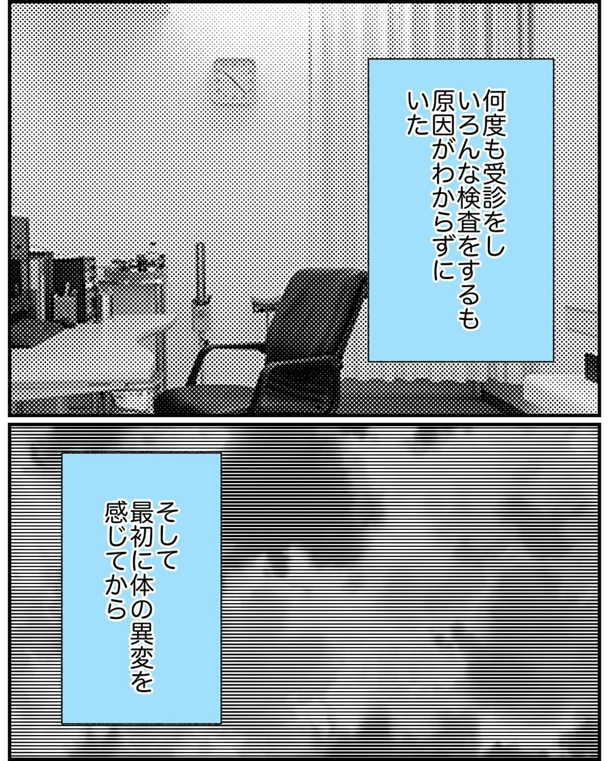 病院を受診しても疲れが原因ではないかと言われる日々。しかし以前よりも症状が悪化しているように感じている花さん。そして1年が経ったある日。病院に家族と共に呼ばれ告げられた衝撃の病名とは?
