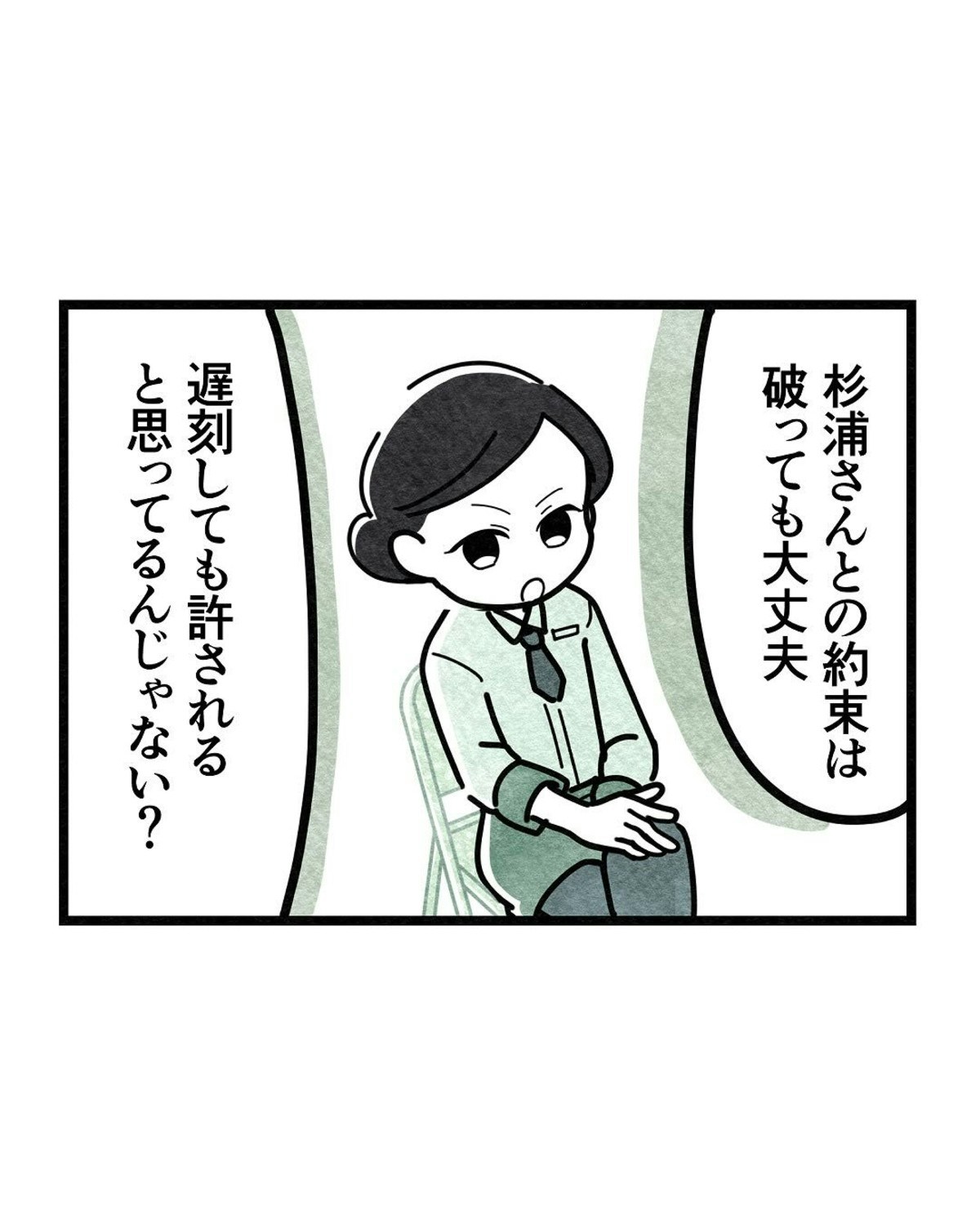 社会人になっても変わらずよく会っていたさほさんとふうかさん。しかし、ふうかさんは約束の時間に遅れてくることが多く、何度も繰り返されるうちに、さほさんの中には少しずつ違和感が生まれていきました。注意しても改善されず、ついには言い訳やうそでごまかすようになったふうかさんに、さほさんは徐々に信頼を失っていきます。