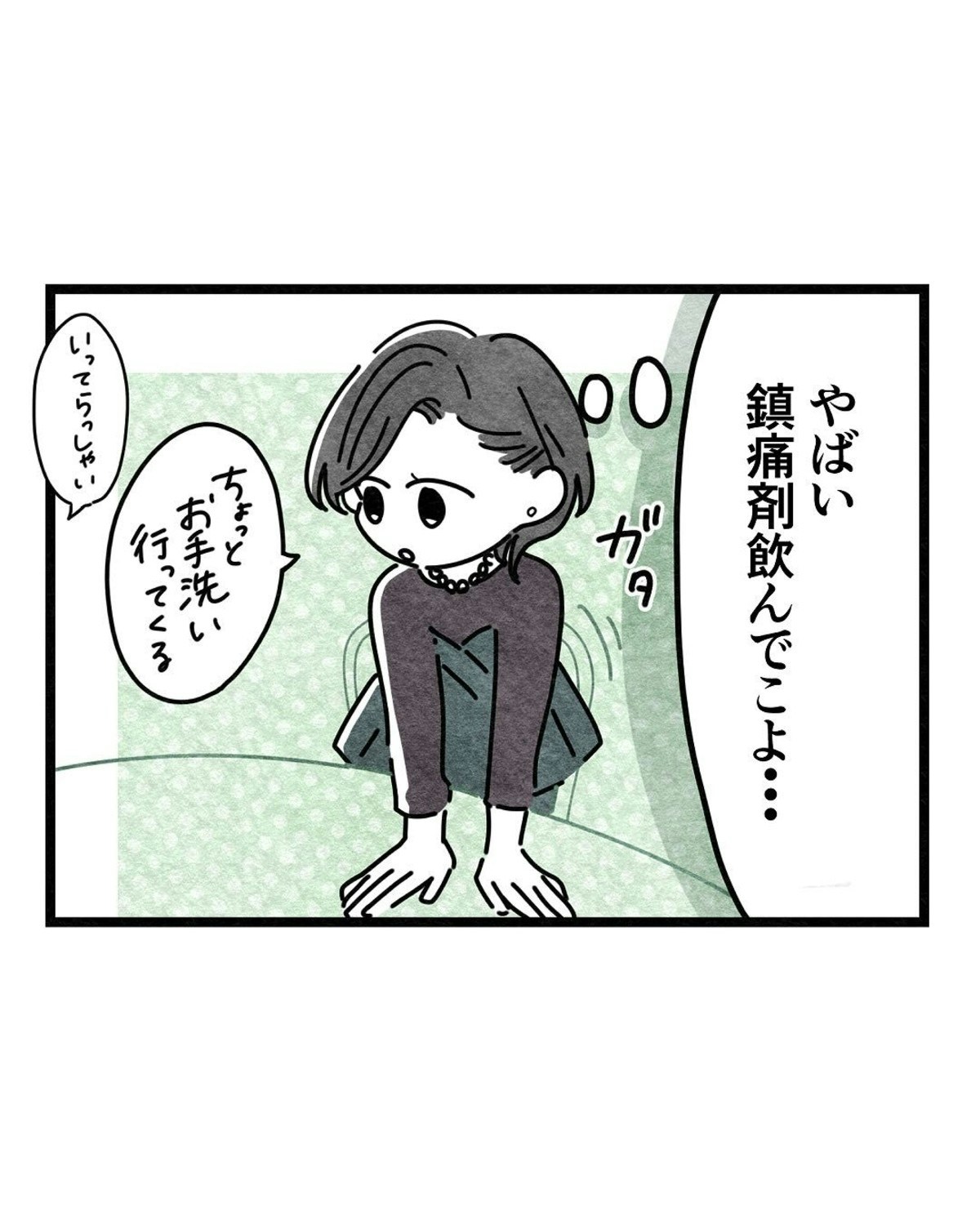 楽しい時間を過ごしていたさほさんですが、突然、痛みが増してきた生理痛。鎮痛剤を飲むために席を外しました。