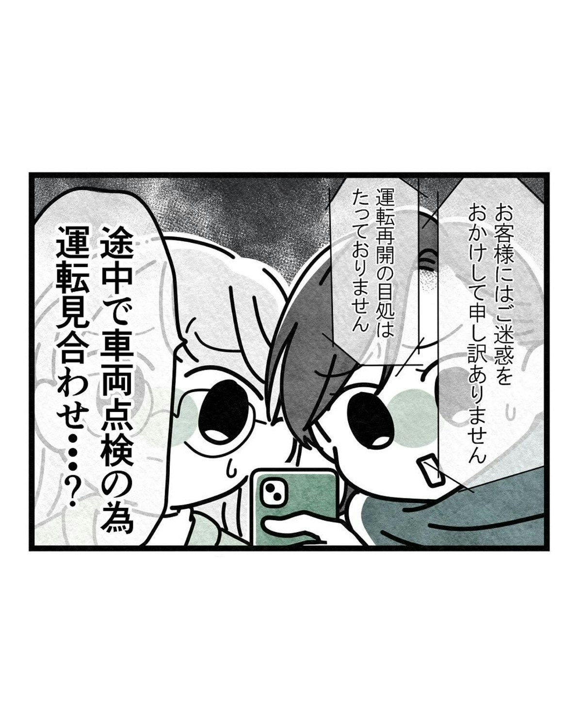 無事友人の結婚式が終わり、幸せな気分で帰路につこうとしていた2人。なんと帰りの新幹線が車両点検のため、運転見合わせで止まっているとのことでした。唖然とする2人。無事に帰ることはできるのでしょうか。