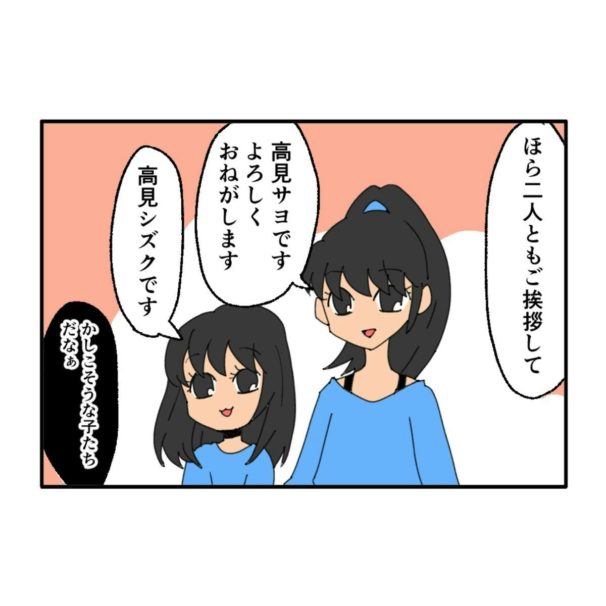 三重崎家の隣に住む高見さんは、とても上品な雰囲気の方でした。子どもたちの年齢も近いため、ハルミもこれから交流できるのが楽しみな様子です。