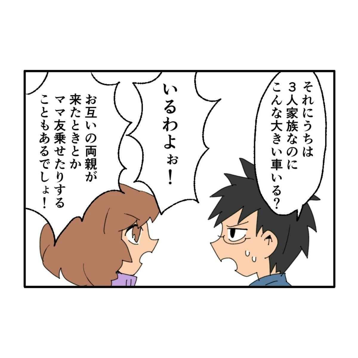 ハルミは夫のコタロウに、ミニバンを買いたいと相談しました。コタロウは「家を買ったばかりだから」とためらっていましたが、ハルミは「とりあえずお店を見に行くだけでも」と誘いました。ところが、実際に試乗してみるとコタロウも気に入り、結局あっさりと車を購入することになりました。