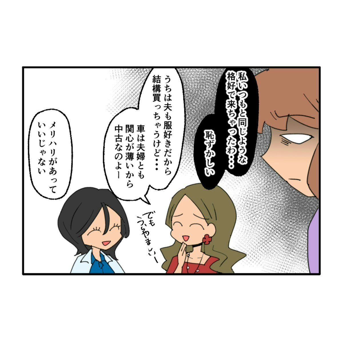 引っ越し先で出会ったママ友たちは、ハイブランドの服や持ち物に身を包み、気さくで親切な人ばかり。けれどハルミは、どこか居心地の悪さを感じ始めます。自分とは違う「豊かな暮らしぶり」に引け目を感じ、次第に劣等感を抱くようになっていったのです。