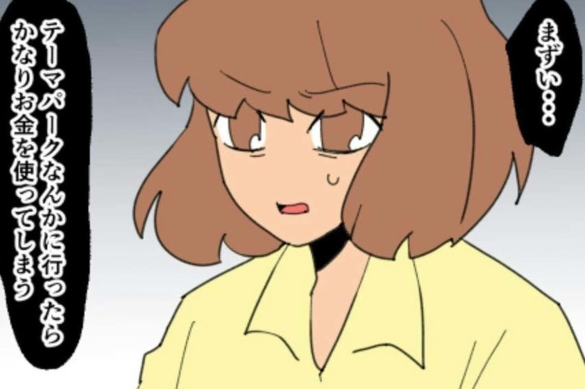 夫のコタロウは、久しぶりの休みに家族でテーマパークへ行きたいと考えています。しかし、貯金が減っているため節約したいと思っているハルミは、どう返事をすればよいか悩んでいます。
