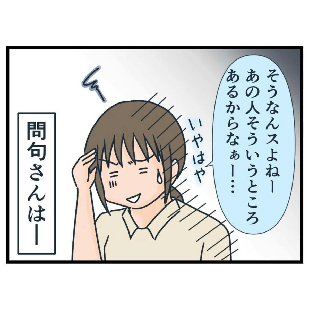 その後も問句さんは、特に根拠もなく他のお客さまを悪く言ったり、勝手な想像で相手を批判したりと、不快な発言を繰り返します。店長が注意を促しても態度は改まらず、相手を否定する言動は続いていました。