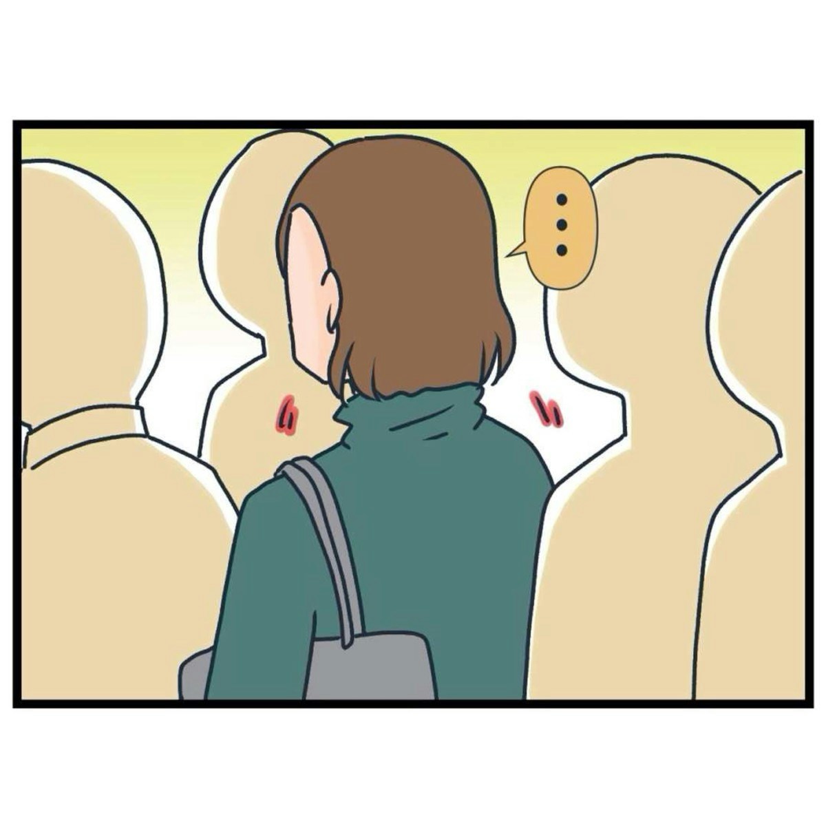突然、肩にかけたかばんに衝撃を感じた問句さん。振り返って「気をつけていただけます?」と言いました。