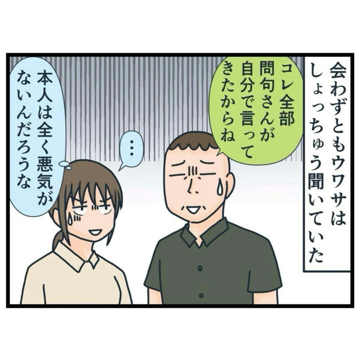 その後も問句さんは、特に根拠もなく他のお客さまを悪く言ったり、勝手な想像で相手を批判したりと、不快な発言を繰り返します。店長が注意を促しても態度は改まらず、相手を否定する言動は続いていました。