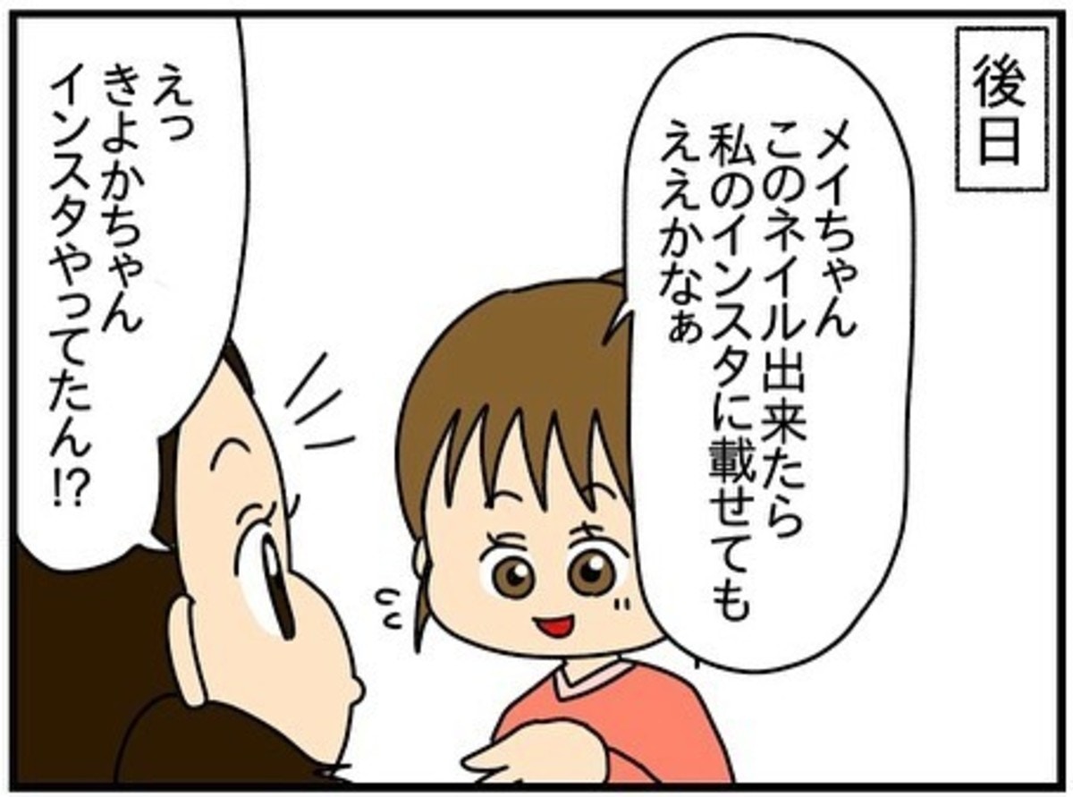 SNSから離れていたきよかさんでしたが、メイちゃんのネイル投稿をきっかけに、久しぶりにインスタグラムを再開することにしました。どんな反応があるか、メイちゃんもわくわくです。