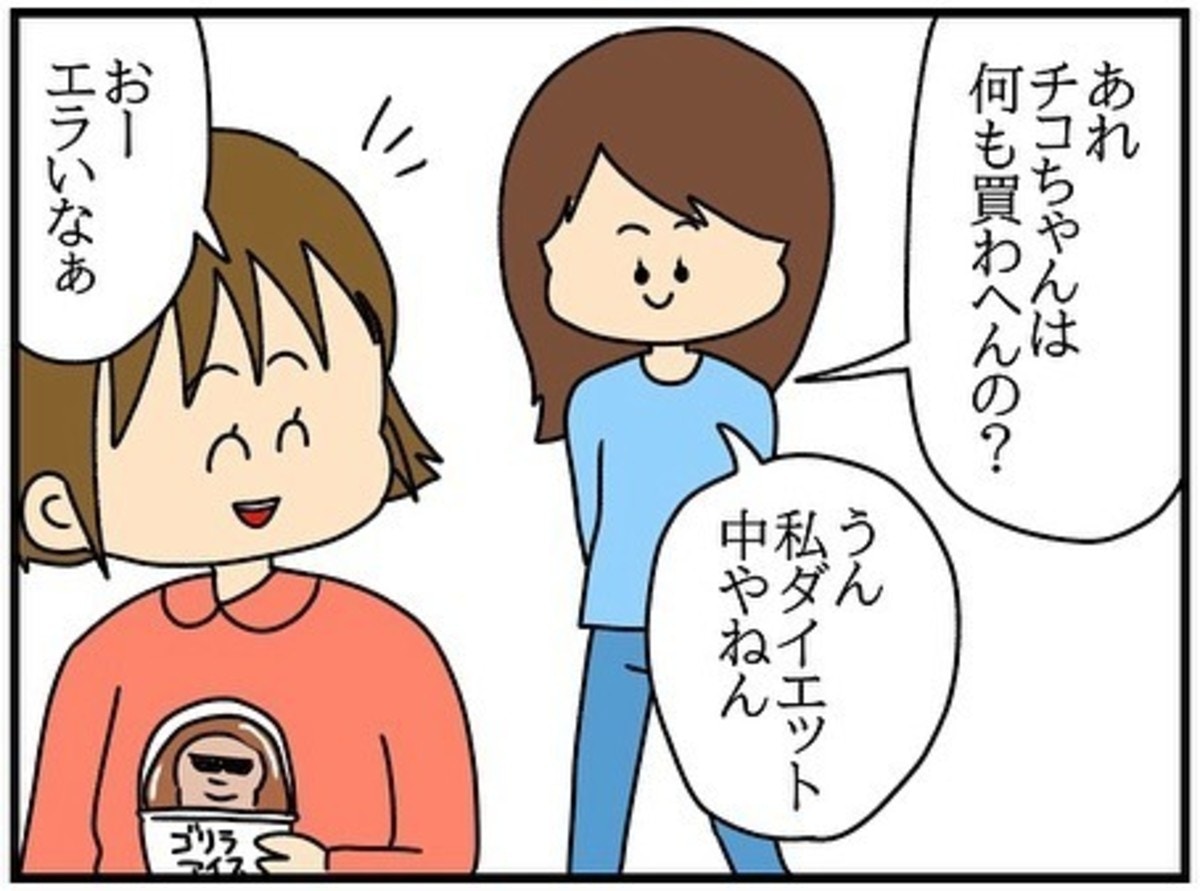 大学時代に同期のみんなでコンビニスイーツを買ったときのこと。チコちゃんはダイエット中で何も買わなかったことを思い出します。
