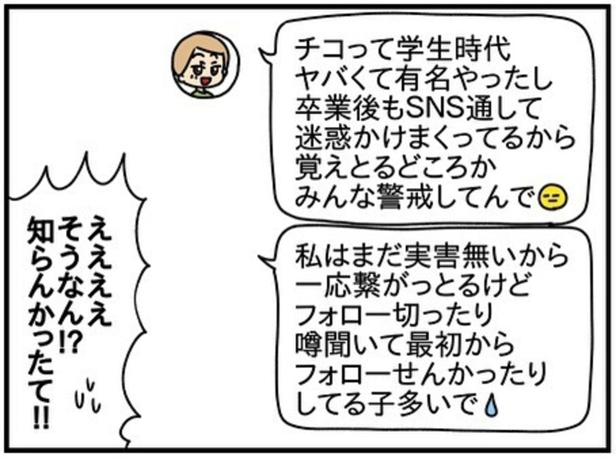 共通の友人・ナナちゃんに相談してみたきよかさん。返ってきたのは、「学生時代からやばくて有名だった」という衝撃の言葉でした。チコちゃんは過去にもたくさん問題行動をしていたようです。