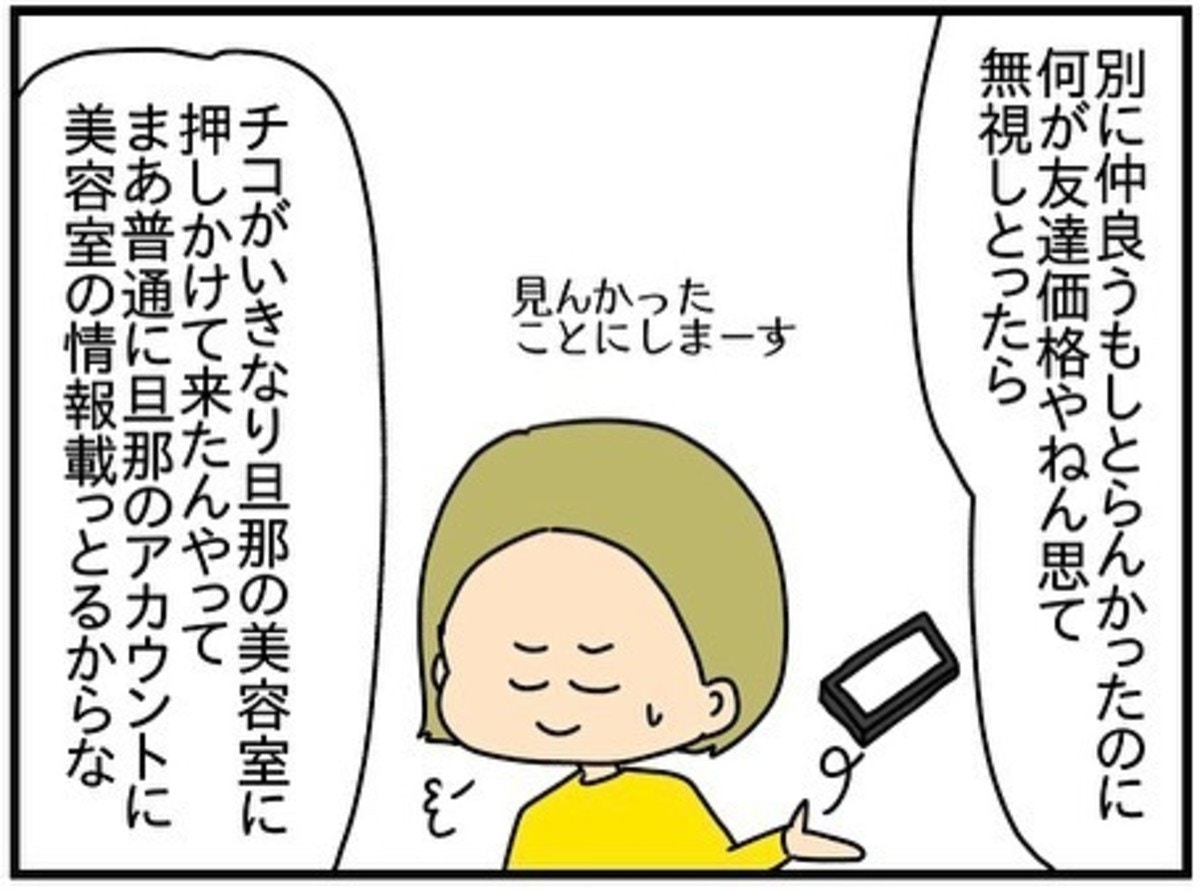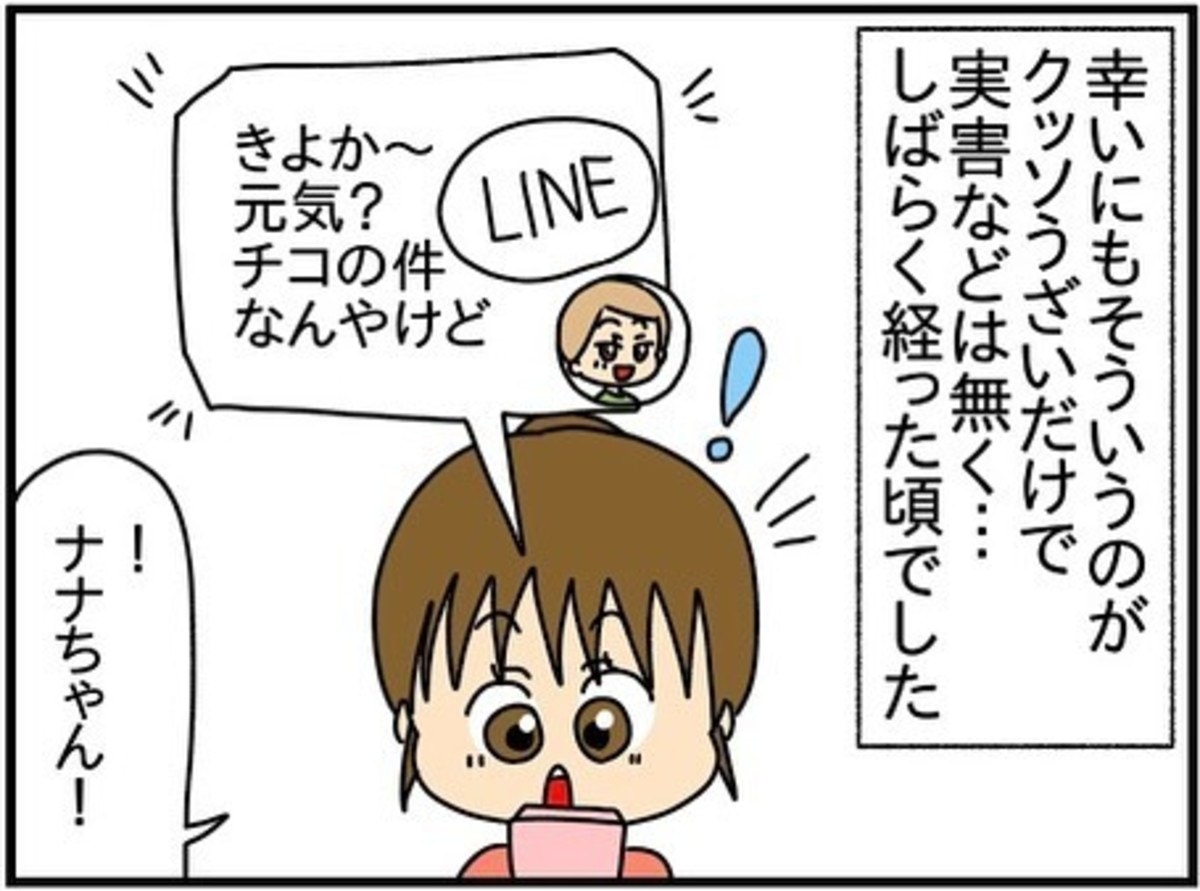 きよかさんがインスタにアップしたネイルの写真をきっかけに、大学時代の同期・チコちゃんとの思いがけないトラブルに巻き込まれることになりました。常識の通じないやりとりや、まわりへの迷惑行為に戸惑う中、きよかさんは共通の友人を通じて、チコちゃんの過去や心の背景を知ることになります。
