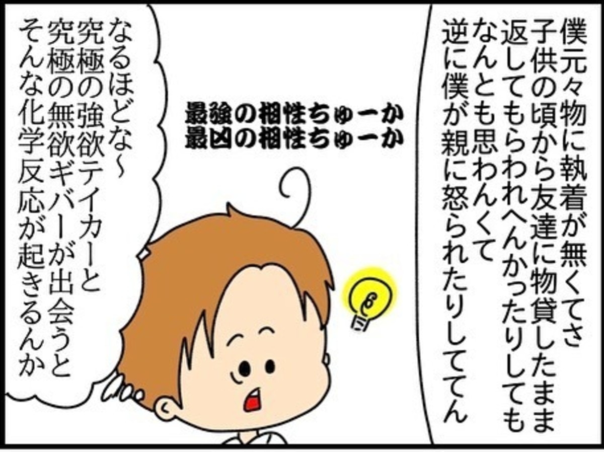 チコちゃんに一目惚れした夫は、結婚前も惜しみなく尽くしていました。夫自身が“物に執着しないギバー”であり、対するチコちゃんは“強欲なテイカー”。その関係性は抜群の相性で、夫はチコちゃんのドケチに気付きませんでした。