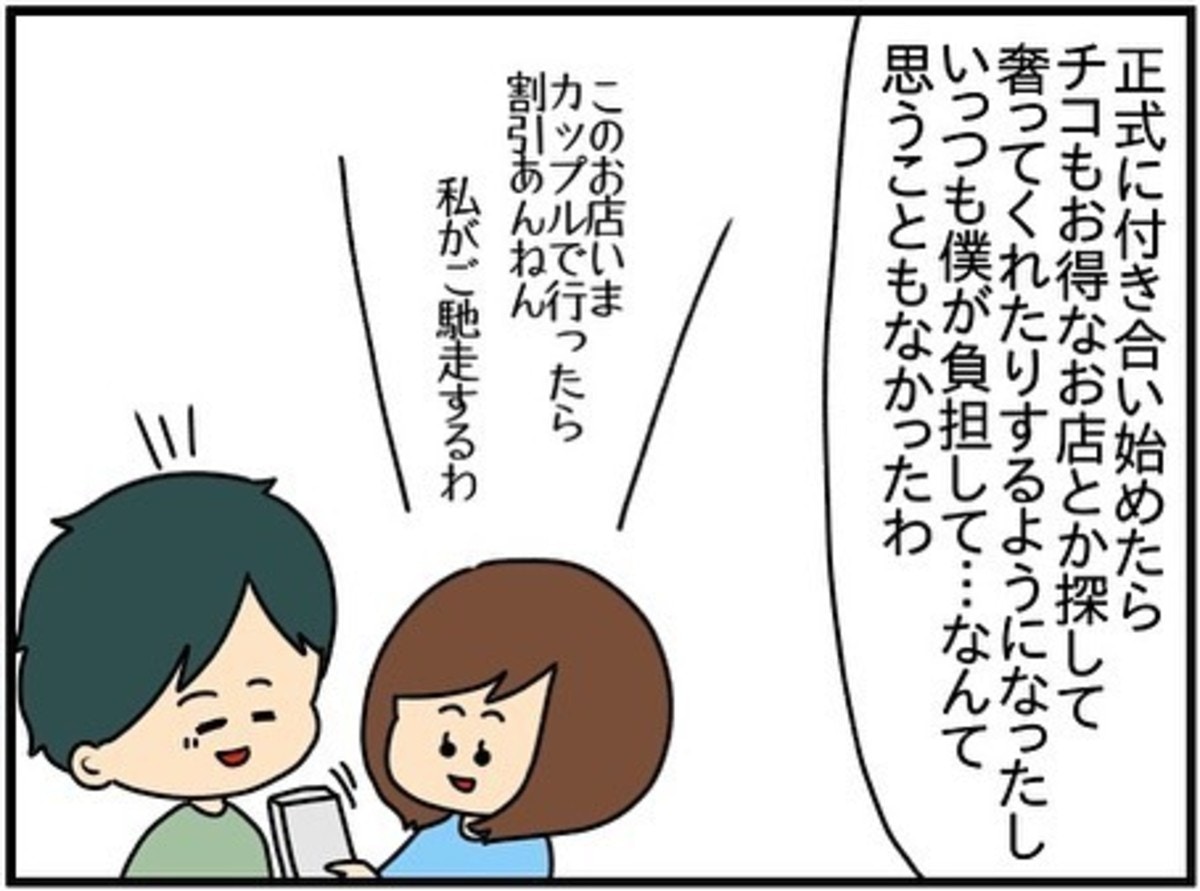 チコちゃんは付き合い始めてから、お得なお店を探したりお金を出すようにもなったので夫は違和感を覚えることは無かったようです。