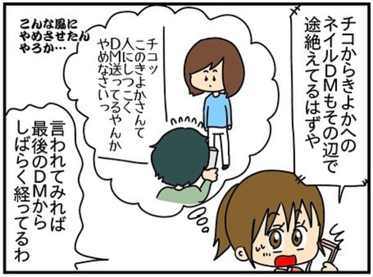きよかさんがインスタにアップしたネイルの写真をきっかけに、大学時代の同期・チコちゃんとの思いがけないトラブルに巻き込まれることになりました。常識の通じないやりとりや、まわりへの迷惑行為に戸惑う中、きよかさんは共通の友人を通じて、チコちゃんの過去や心の背景を知ることになります。