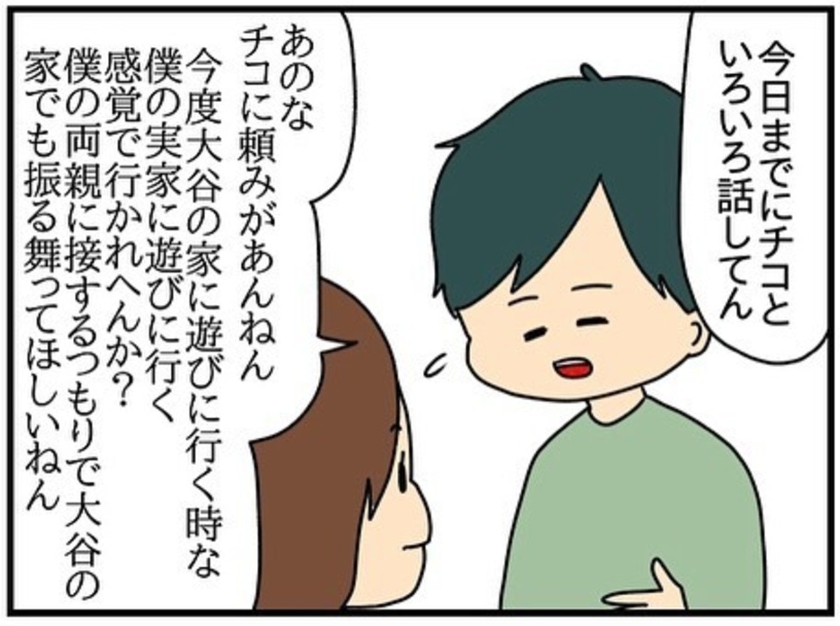 夫の同僚である大谷さんのお家へ遊びに行くことが決まり、夫はチコちゃんへ「義両親に接するように大谷さん夫婦にも接してほしい」と伝えると、その言葉にチコちゃんは意外な反応を見せました。